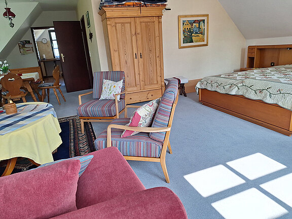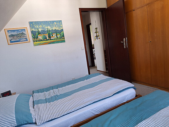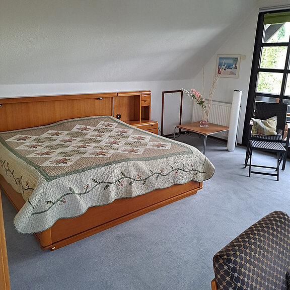 in unserer FerienwohnungMit einer großzügigen Wohnfläche von ca. 84 qm bietet die Wohnung alles, was Sie für einen angenehmen Aufenthalt benötigen. Das gemütliche Schlafzimmer ist mit einem komfortablen Doppelbett ausgestattet.