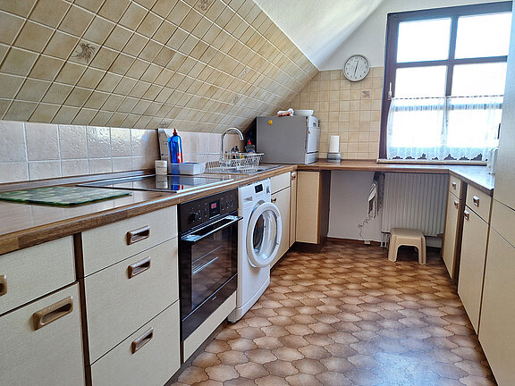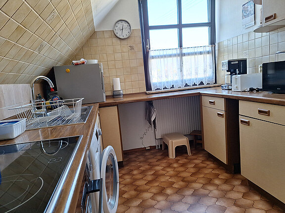 in der Ferienwohnung KönigswinterDie Wohnung umfasst zudem eine einladende Essecke und eine vollständig ausgestattete Küche, in der Sie alles Nötige für die Zubereitung von Mahlzeiten vorfinden, darunter Geschirrspüler, Mikrowelle, Waschmaschine, Kühlschrank und E-Herd.